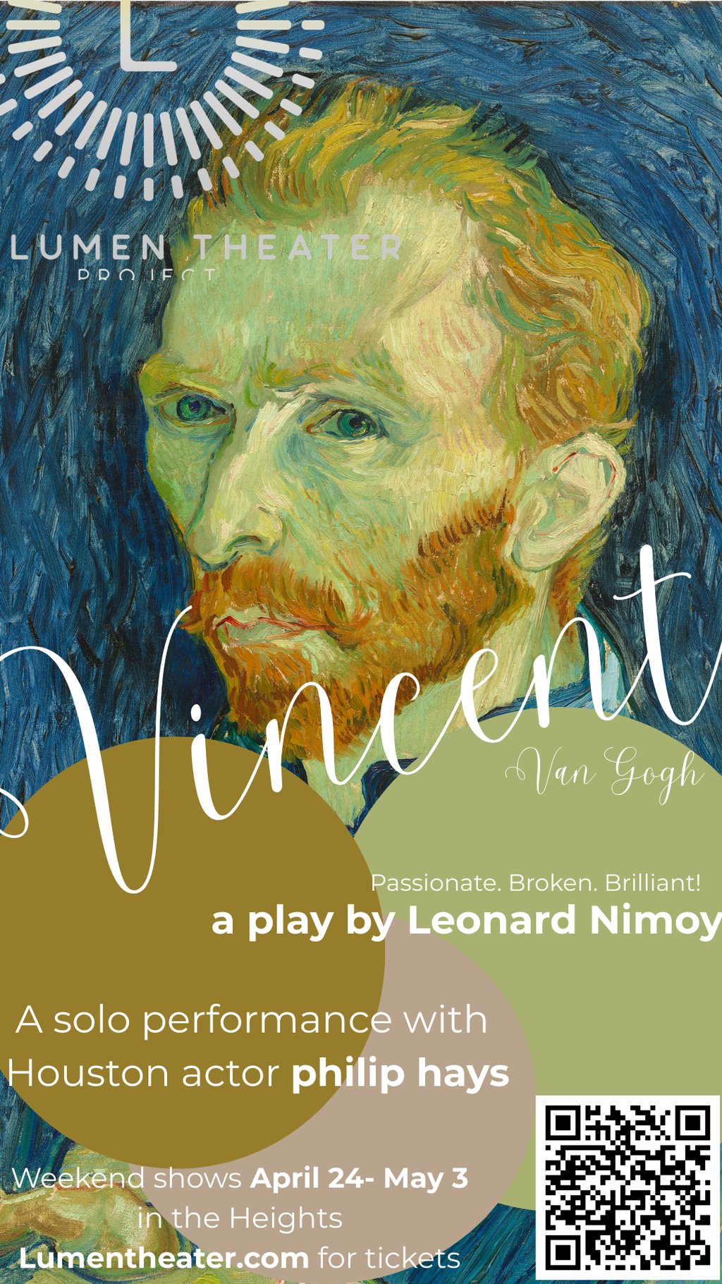 Adapted from over 500 letters between the painter and his brother—where Theo Van Gogh defends Vincent’s legacy shortly after his 1890 death. The play explores Vincent's passion, mental illness, and artistic genius, highlighting his transition from a pastor to a painter who sold only one painting in his lifetime. Van Gogh's compelling story crafts narratives that resonate deeply and illuminates the complexities of faith in our humanity.